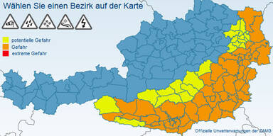 14. Oktober 2015 | 12:00 Uhr Prognose Unwetter-Alarm: Bis zu 110 Liter Regen Ein Höhentief und ein Mittelmeertief nehmen Österreich in die Zange. Im ganzen Land bedecken dichte Wolken den Himmel und es regnet immer wieder. Längere Regenpausen sind am ehesten in den nördlichen Regionen möglich. Am meisten Regen bekommt der Süden und Südosten ab. In Kärnten sind bis Donnerstagmittag bis zu 110 Liter Regen pro Quadratmeter möglich.In der Steiermark und im Burgenland ist mit Regenmengen zwischen 40 und 60 Litern zu rechnen. In Niederösterreich muss man mit 60 Liter Regen rechnen.In Tirol können bis Donnerstagmittag insgesamt 80 Liter Regen fallen, in Salzburg bis zu 50.In Wien sind bis Donnerstagabend bis zu 40 Liter Regen möglich. Aktuelle Wetter-Warnung für Österreich Klicken Sie auf die Grafik, um zur interaktiven Version der Karte zu gelangen